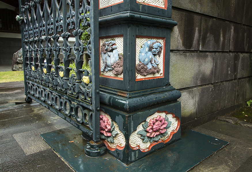 そのコンドルが妙法寺の鉄門を設計したのは、来日した翌年のこと。進取の精神に富んだ妙法寺は文明開化の機運にも乗り、日本寺院としてはほとんど例のない鋳鉄製の門を工部省に依頼。もともと日本の美術や建築に深い造詣のあったコンドルが設計を任されたと思われる。
